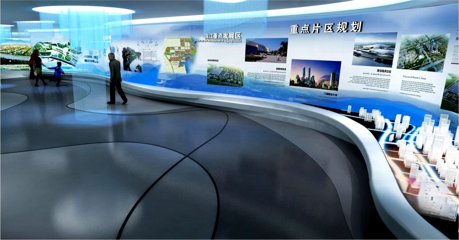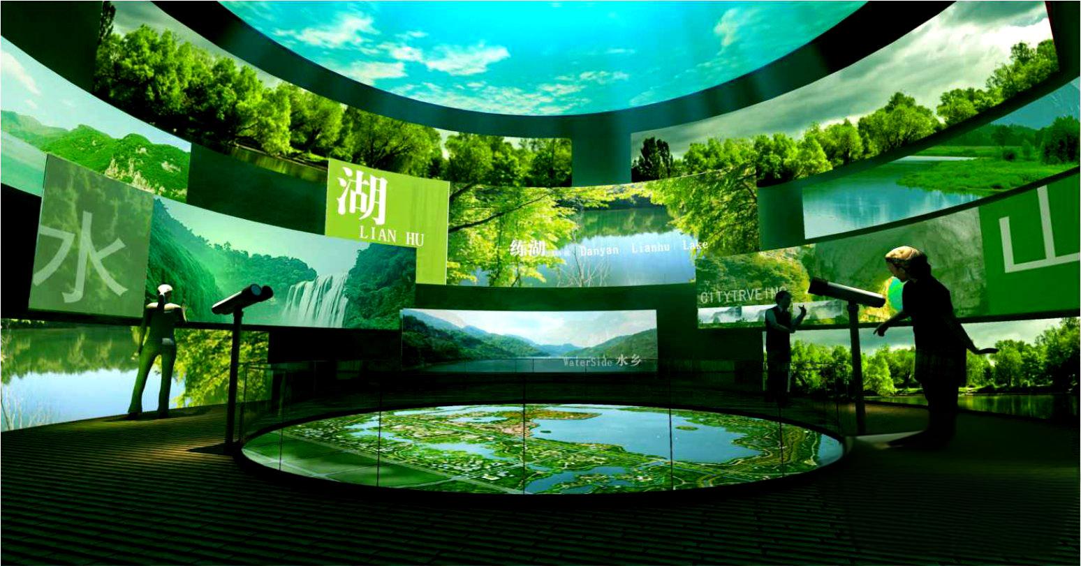 以水為故事主題線索或空間設計元素串聯四大展區序廳、歷史演繹廳、規劃發展廳、生態體念廳。
