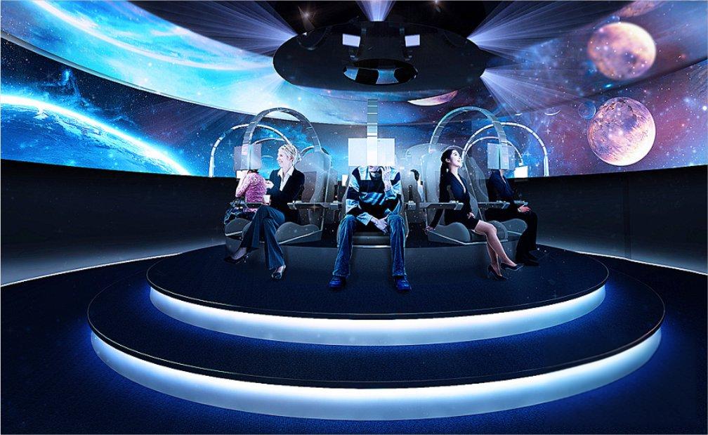 120°-360°環幕影院不同于一般的電影屏幕,環幕影院采用柱面投影屏幕 ,將觀賞者圍繞在中心。超長跨度的廣闊畫面充滿觀賞者的視野,全方位立體聲與影片情節相輔相成。柱面投影屏幕的弧度有360度、270度、180度等多種選擇,可根據場地具體情況進行個性化設計和施工,保證環幕影最佳的視聽效果。