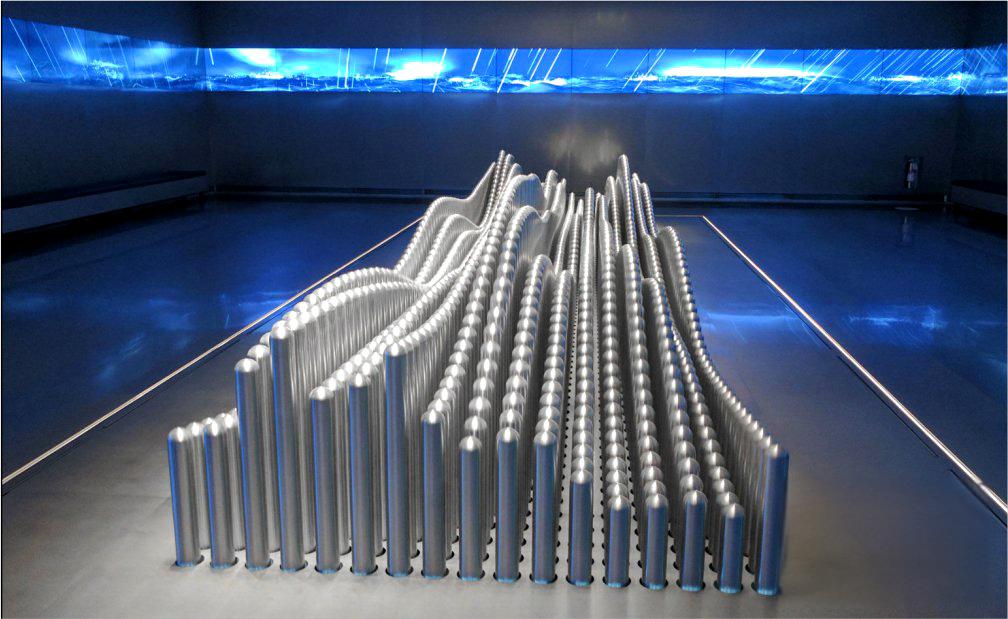多媒體裝置藝術,是指藝術家在特定的時空環境里,將人類日常生活中的已消費或未消費過的物質文化實體、進行藝術性地有效選擇、利用、改造、組合,以令其演繹出新的展示個體或群體豐富的精神文化意蘊的藝術形態。簡單地講,裝置藝術,就是“場地+材料+情感”的綜合展示藝術。其中結合燈光藝術、機械裝置、中控智能、互動程序、影像藝術、聲音藝術等多方面的體念結合。