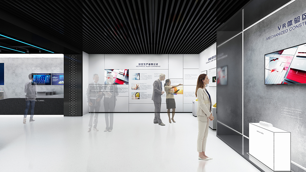 該展廳為深汕西改擴建項目第一個展廳,從最初的材料展示廳,經過深入挖取、精準定位,逐步定位為樹立高速公路改擴建行業名片、探討技術創新模式、促進技術變革創新、及各施工工種施工交底和安全教育體驗等多功能工程展示廳。展廳借助多媒體和數字化技術,結合各種科技展示系統,打造一個綜合展示空間,為參觀者呈現了一個前所未有的體驗盛宴。
